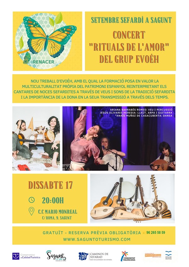L'activitat del dissabte és el nou treball del grup Evoéh i posa en valor la multiculturalitat pròpia del patrimoni espanyol reinterpretant els cantares de noces sefardites a través de veus i sons de la tradició sefardita, i la importància de la dona en la seua transmissió a través dels temps.