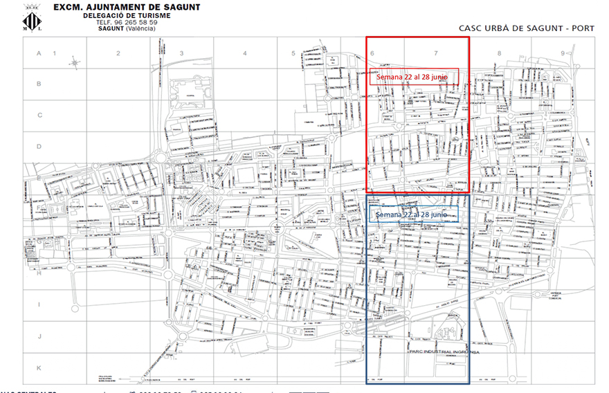 La delegació de Sanitat de l'Ajuntament de Sagunt continua amb els tractaments del clavegueram de la ciutat contra plagues de paneroles i rates. Després que la setmana passada els treballs se centraren en els barris més pròxims a la mar en el nucli del Port de Sagunt, durant la setmana del 22 al 28 de juny, seran les següents zones en direcció oest les que seran tractades. Concretament, els treballs d'esta setmana se centraran en les zones pròximes al Casal Jove, al CEIP María Yocasta, a l'IES Maria Moliner, al CEIP Mediterrani, al Barri Obrer o a la Gerència, entre d’altres.