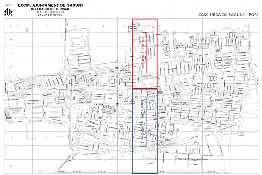 Els requadres blau i roig marquen les zones on s'actuarà esta setmana