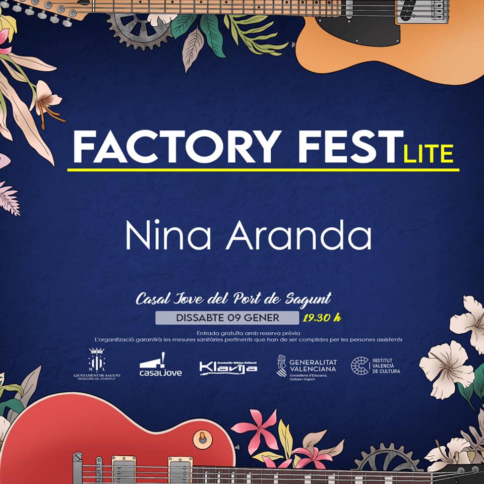 Dissabte que ve, 9 de gener, el Casal Jove del Port de Sagunt acollirà el següent concert de la segona edició del Festival Factory Fest el qual durà a terme la cantautora local Nina Aranda a les 19.30 hores.