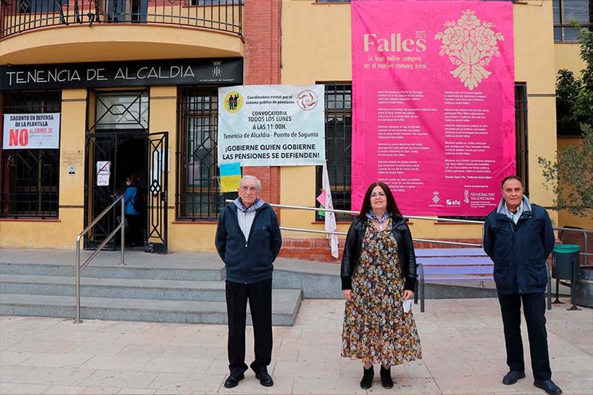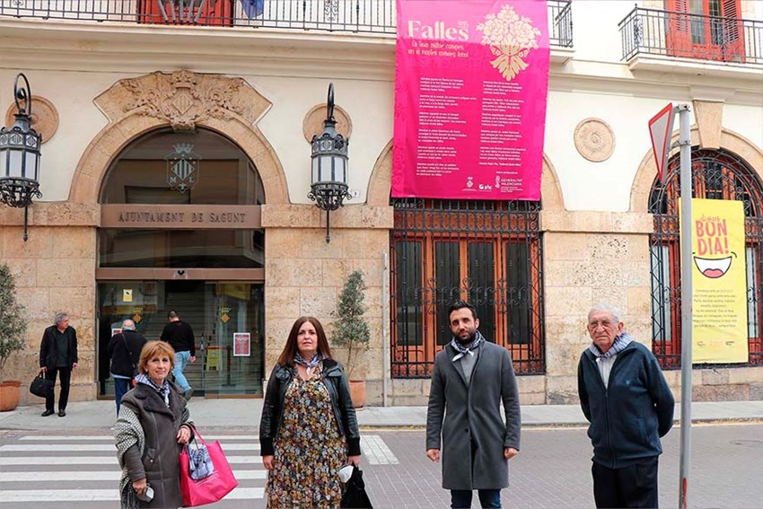 La regidoria de Comerç i Mercats ha desplegat les pancartes i lones commemoratives de la campanya de comerç de les Falles 2022 este matí en les façanes dels edificis municipals, tant en el Palau Municipal, a Sagunt, com en la Tinença d'Alcaldia, en el Port de Sagunt.
