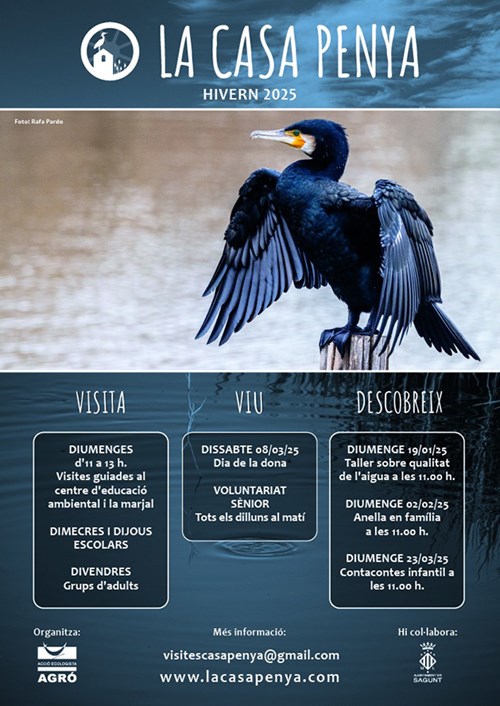 A més de totes estes activitats, es recorda que la resta de diumenges de gener, febrer i març La Casa Penya es pot visitar en un horari d'11 a 13 hores. En este cas, no cal apuntar-se, però es recomana als grups de més de quatre persones avisar per correu a visitescasapenya@gmail.com. Enguany també es manté l'oferta de visites gratuïtes per a centres educatius els dimecres i els dijous, així com els divendres per a grups d'adults (en tots dos casos sota reserva). Així mateix, aquelles persones interessades a col·laborar en les tasques de manteniment i conservació del centre i de la Finca de Penya poden adherir-se a la colla de voluntaris sènior dels dilluns.