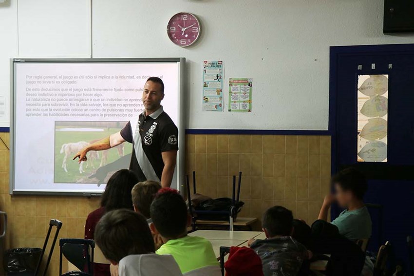L'empresa Adiestramiento Valencia K9 ha portat al col·legi Professor Tierno Galván gossos perquè els alumnes del centre realitzen activitats amb ells i coneguen de primera mà la millor manera de tractar-los i comprendre el comportament i el llenguatge corporal d'estos animals. Igualment, per part de l'empresa, se'ls han explicat una sèrie de pautes a seguir perquè els gossos s'integren d'una manera reeixida a la vida en els domicilis i en àmbits socials.