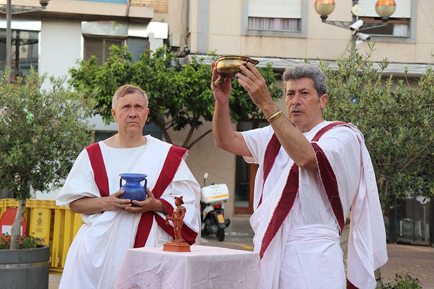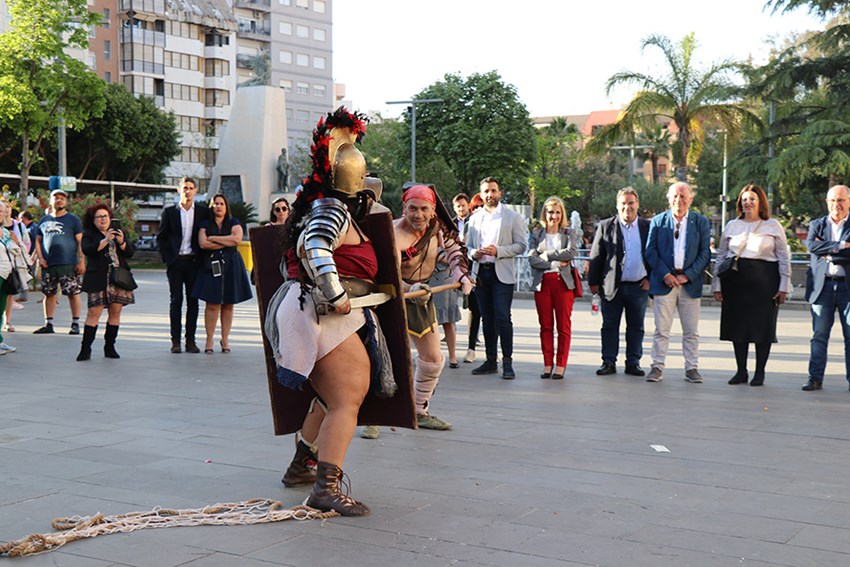 Després de la roda de premsa, la comitiva es va traslladar a la plaça Cronista Chabret per a descobrir una fita en el qual es plasma el patrimoni comercial, turístic, cultural i natural que posseïx Sagunt. La fita, que va ser descoberta per l'alcalde de Sagunt, Darío Moreno, José Manuel Bello i Lola Torrente, conté un text informatiu sota l'epígraf ‘Sagunt Capital Valenciana de la Romanització’ i una fotografia de Sara Martimaga en la qual s'aprecia una panoràmica de la ciutat. Abans del descobriment de la fita, l'Associació Cultural Saguntum Civitas va realitzar un rite religiós romà honor a Mercuri, protector del comerç, seguit d'un homenatge romà que es l'exhibició d' una lluita gladiatòria.