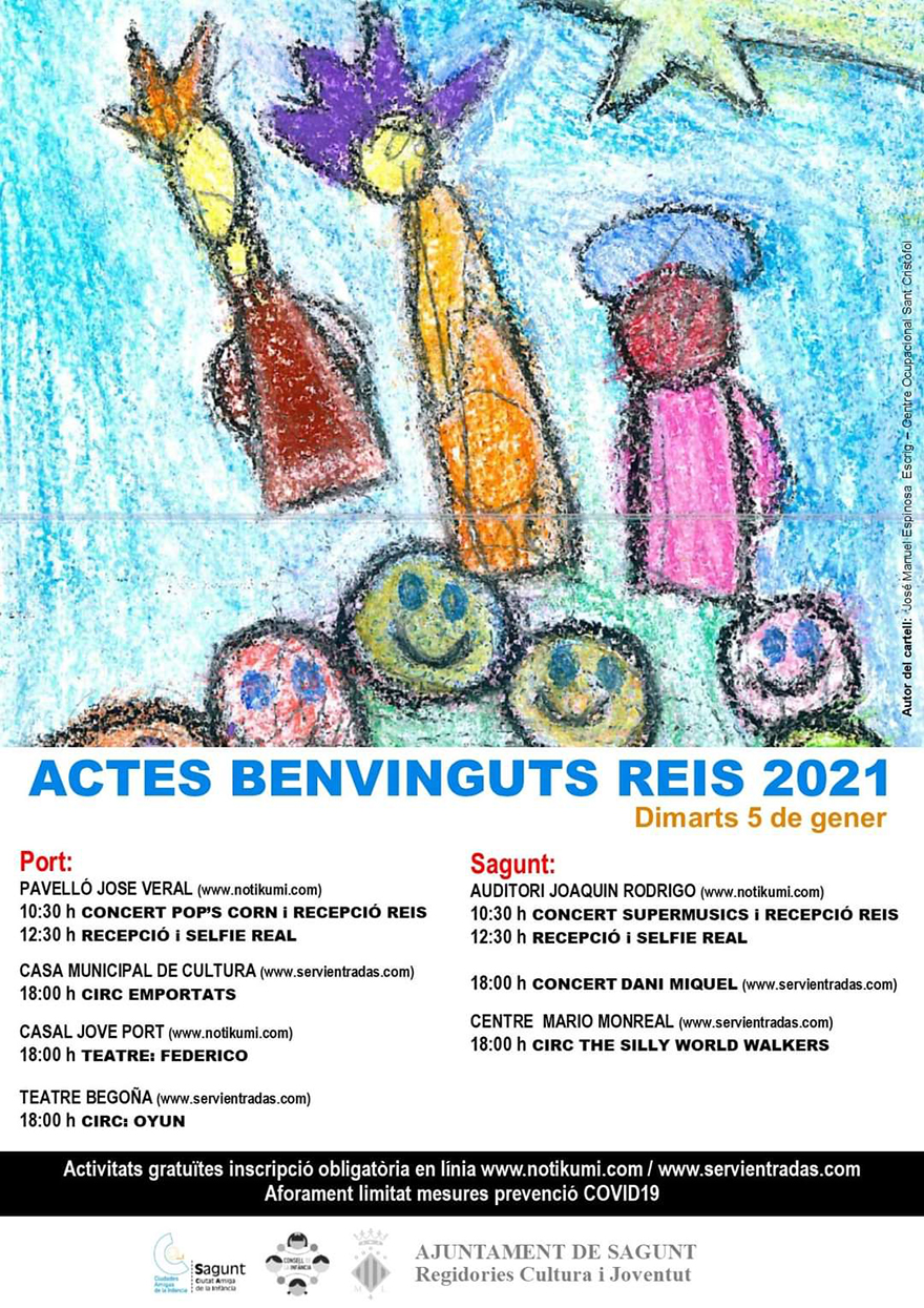 A la vesprada tindran lloc 5 actes d'acolliment de circ, música i teatre, tots a les 18.00 hores, en diferents punts del municipi. La Casa Municipal de Cultura acollirà el circ Emportats; el Casal Jove del Port de Sagunt l'obra de teatre Federico; el Teatre de Begoña, el circ Oyun; l'Auditori Joaquín Rodrigo, el concert de Dani Miquel i el Centre Cultural Mario Monreal, el circ The Silly World Walkers. Per a assistir a estes activitats gratuïtes haurà de sol·licitar-se una invitació a través de la web de Servientradas i de Notikumi. «Demanem que no es repetisca l'assistència per a intentar albergar el major nombre de xiquets i xiquetes en estes activitats», ha assenyalat el regidor, així com ha demanat «responsabilitat a les famílies, ja que ha sigut un treball de molts mesos i molt complicat pels canvis de les regles cada quinze dies».
