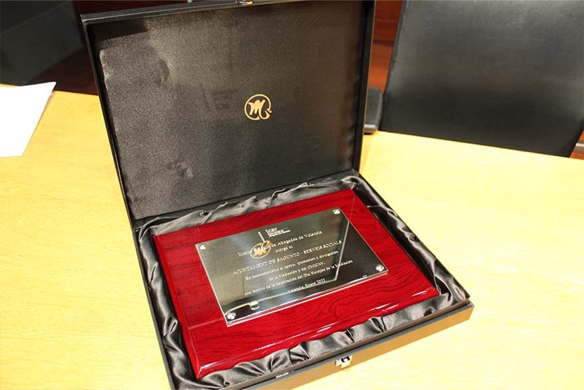 El Departament de Serveis Socials de l'Ajuntament de Sagunt va rebre este dijous a la vesprada un reconeixement al seu servei de mediació per part de l'Il·lustre Col·legi d'Advocats de València, un guardó que entrega esta entitat, a través del seu Centre de Mediació (CMICAV) amb motiu del Dia Europeu de la Mediació.