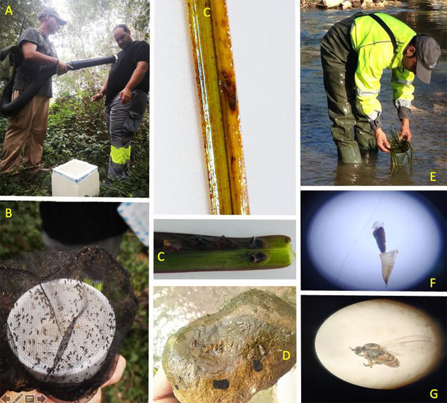 L'article de base científica desgrana que l'estudi ha consistit a realitzar mostrejos de formes adultes d'insectes voladors i examinar làmines d'aigües per a revisar la vegetació i roques, on es poguera detectar larves i pupes de simúlidos o mosques negres (Diptera, Simuliidae), per a posteriorment en el laboratori identificar si es tractava d'exemplars de la família Simuliidae.