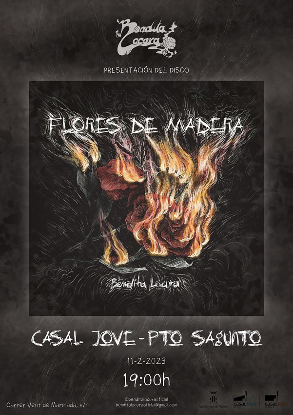 La jove banda de rock local Bendita Locura presenta en directe el seu primer disc, Flores de Madera, en el Casal Jove. El CD està compost per set temes, en el qual han estat treballant al voltant de tres anys, amb algunes aturades i una pandèmia per mig. El grup té la seua residència musical en el Casal Jove del Port de Sagunt, on assaja, dins del Programa Cultura Jove/Residències.