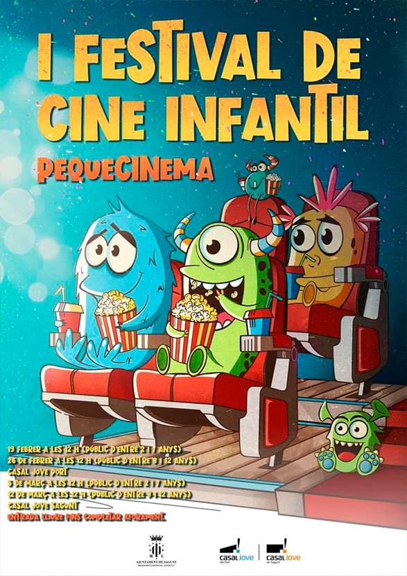 El I Festival de Cinema Infantil Pequecinema aterra en el Casal Jove dissabte que ve i fins al 12 de març els xiquets i xiquetes podran veure les projeccions especialment seleccionades per a esta ocasió. Durant els dies 19 i 26 de febrer es projectaran en el Casal Jove Port diferents curts destinats al públic infantil d'entre 2 i 7 anys i d'entre 8 i 12 anys respectivament. De la mateixa manera, en el Casal Jove Sagunt estes projeccions tindran lloc els dies 5 de març per al públic d'entre 2 i 7 anys i el 12 de març per al públic d'entre 8 i 12 anys.