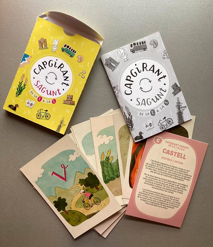Cal destacar que el joc proposa un viatge lúdic per les característiques mediambientals, històriques, econòmiques i culturals que fan singular el municipi. Les cartes de vocabulari estan dividides en cinc parts diferenciades per colors: Història (marró), Identitat (taronja), Medi Ambient (verd), Ciutat (blau) i Personatge (roig). Es poden utilitzar com a guia o emprant les activitats, també interactives, que l'acompanyen al web https://bit.ly/capgirantsagunt.