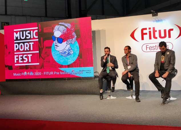 El Music Port Fest ha presentat aquesta vesprada la seua tercera edició a la Fira Internacional de Turisme (FITUR) que té lloc a Madrid fins diumenge que ve. L'acte, celebrat a l'estand de la Comunitat Valenciana a la zona FITUR Festivals, ha comptat amb les intervencions de Darío Moreno, alcalde de Sagunt; de Sergi Almiñana, un dels directors de l’esdeveniment; i de Daniel Arnal, tècnic de Turisme Comunitat Valenciana responsable de les marques Mediterranew Music i Mediterranew Fest.