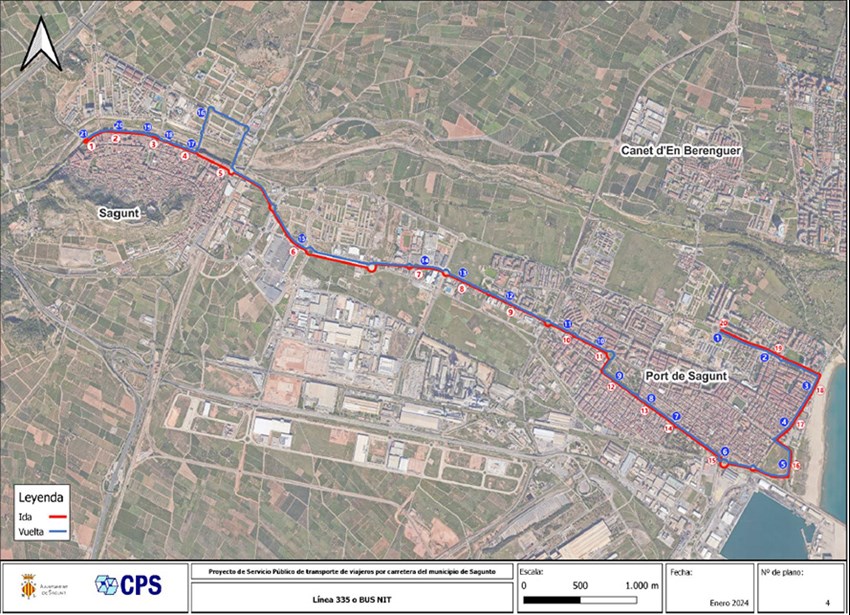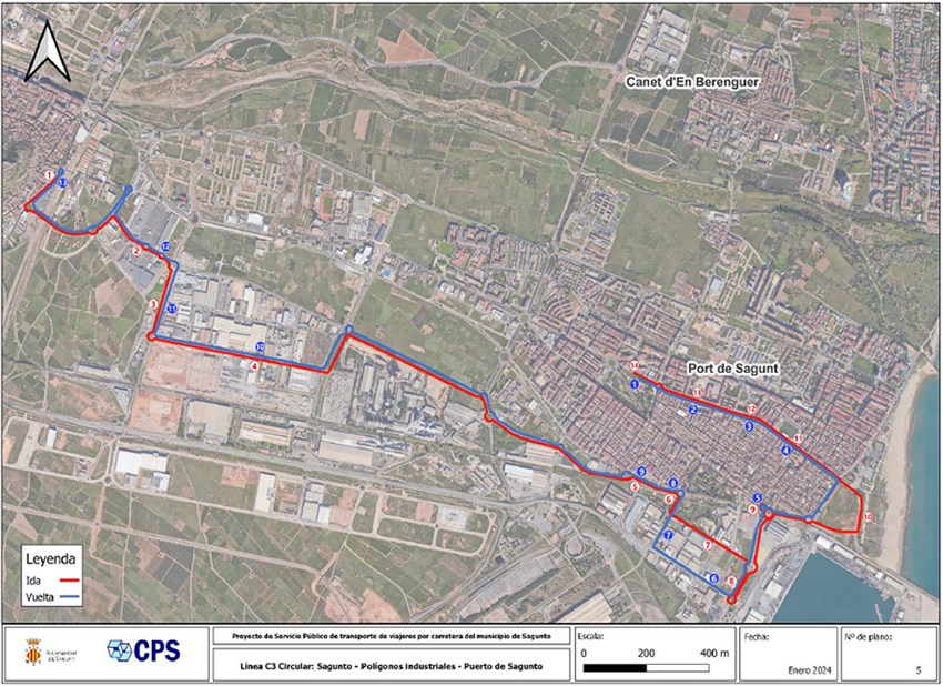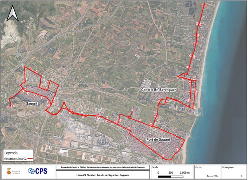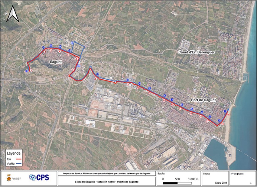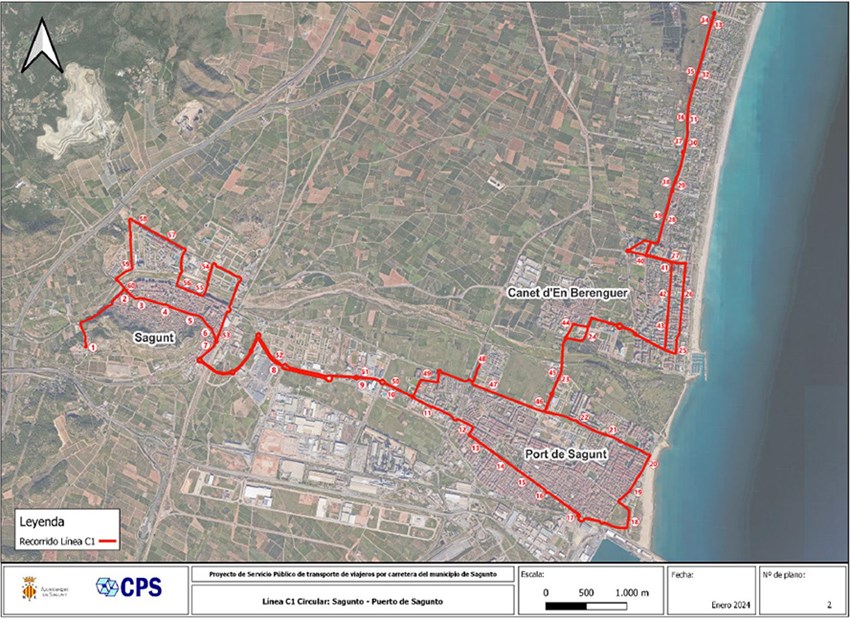 L'àmbit de prestació del servici és el municipi de Sagunt i enllaçarà els nuclis urbans de Sagunt, el Port de Sagunt i Almardà. Cal destacar que en el seu recorregut cap a Almardà, l'itinerari circula pel terme municipal de Canet d'en Berenguer.