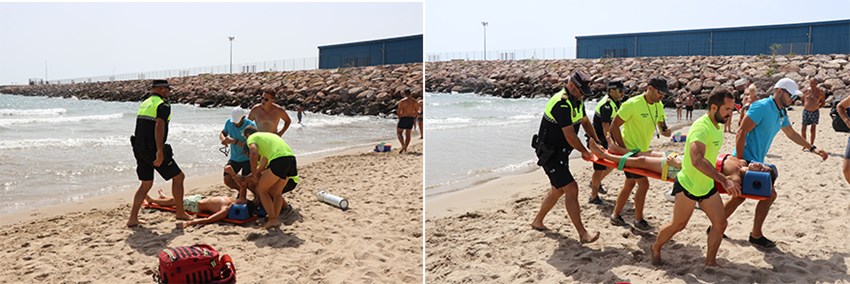 Este simulacre de salvament es realitza de manera periòdica per a millorar la coordinació de tot el personal implicat a les platges, així com per a millorar els temps de reacció. El dispositiu que ha participat en el simulacre estava format per policies locals de platja, socorristes, patró d'embarcació, coordinador de socorristes, dron i el servei tècnic sanitari (ambulància i metge).
