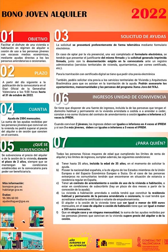 Per a més informació, es pot consultar la web https://habitatge.gva.es/es/web/vivienda-y-calidad-en-la-edificacion/bono-lloguer-jove o https://bonojove.gva.es/