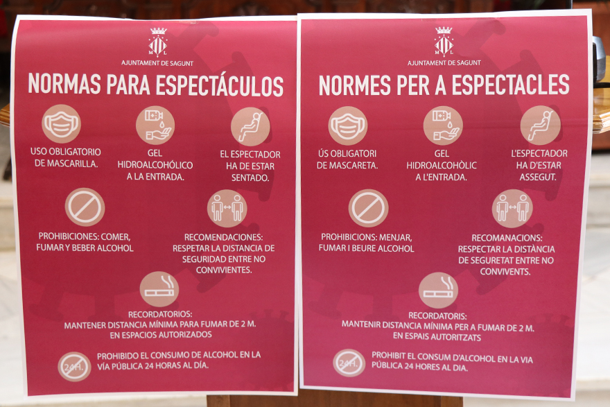 L'hora de finalització dels espectacles, si bé no hi ha obligatorietat de tancar a la 1 de la matinada a Sagunt, s'ha acordat que serà a les 12.30 hores per motius de solidaritat amb l'hostaleria i prevenció davant futures mesures. Per tant, els espectacles que començaven a les 11.30 hores s'han avançat mitja hora.