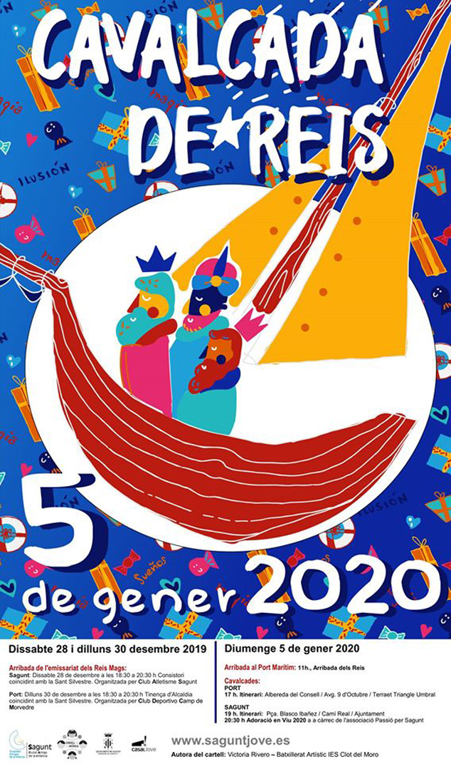 La tradicional Cavalcada de Reis, el tema de la qual enguany són els viatges d'aventures al voltant del món, començarà a les 17.00 h. Primer transcorrerà pel Port de Sagunt, amb un recorregut que canvia respecte a l'any passat, ja que s'iniciarà en l'Albereda i recorrerà l'avinguda 9 d’Octubre fins al Triangle Umbral on Melcior, Gaspar i Baltasar seran rebuts amb una actuació teatral. A partir de les 19 hores, aproximadament, serà el torn de recórrer el nucli de Sagunt. La cavalcada iniciarà el seu recorregut al carrer Almenara fins a les portes del consistori pel Camí Reial, i finalitzarà amb l'Adoració dels reis en el pesebre vivent a càrrec de Passió per Sagunt en la plaça Major.