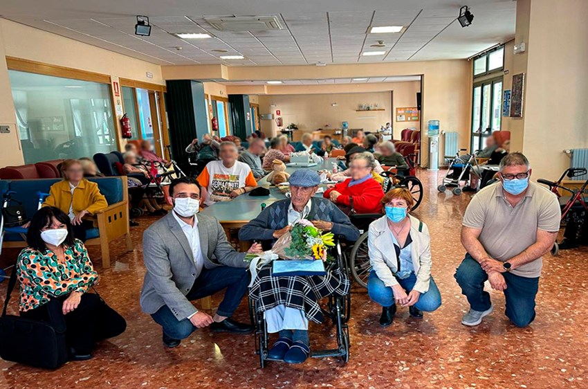 L'alcalde de Sagunt, Darío Moreno, i el regidor de Majors, Alejandro Sotoca, han entregat una placa commemorativa i un ram de flors a les 5 persones majors centenàries del municipi