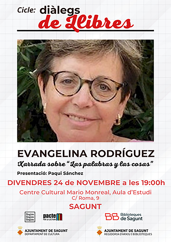 La pròxima convidada al cicle ‘Diàlegs de Llibres’ és la catedràtica de Literatura Espanyola de la Universitat de València, Evangelina Rodríguez Cuadros. El divendres, 24 de novembre, a les 19 hores l'autora acudirà al centre cultural Mario Monreal per a presentar el seu últim assaig: Las palabras y las cosas en el corral de las comedias.