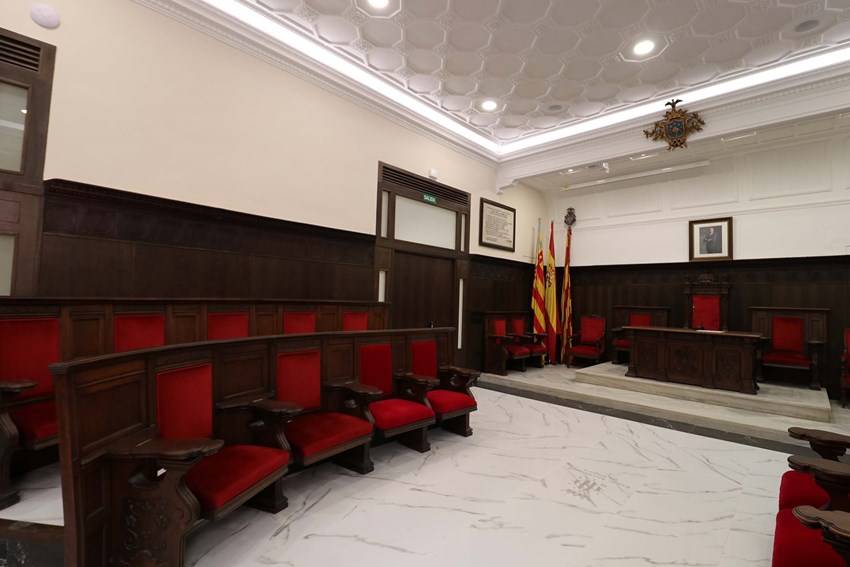 La remodelació del saló de plens del Consistori ja ha acabat i este mateix matí ha tingut lloc la firma de l'acta de recepció de les obres. El propòsit d'esta intervenció era modernitzar la seu de la sobirania municipal i transformar-la en un lloc inclusiu sense barreres arquitectòniques i amb els mitjans tècnics actualitzats.