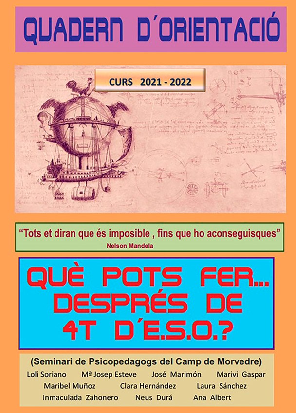Es tracta d'una completa guia editada pel departament d’Educació, el contingut de la qual, per altra banda, ha sigut elaborat pel Seminari de Psicopedagogues i Psicopedagogs dels centres educatius de secundària de la comarca del Camp de Morvedre, així com per orientadors i orientadores. El quadern recull les possibilitats que tenen els i les estudiants de quart de l'ESO quant a itineraris i alternatives formatives.