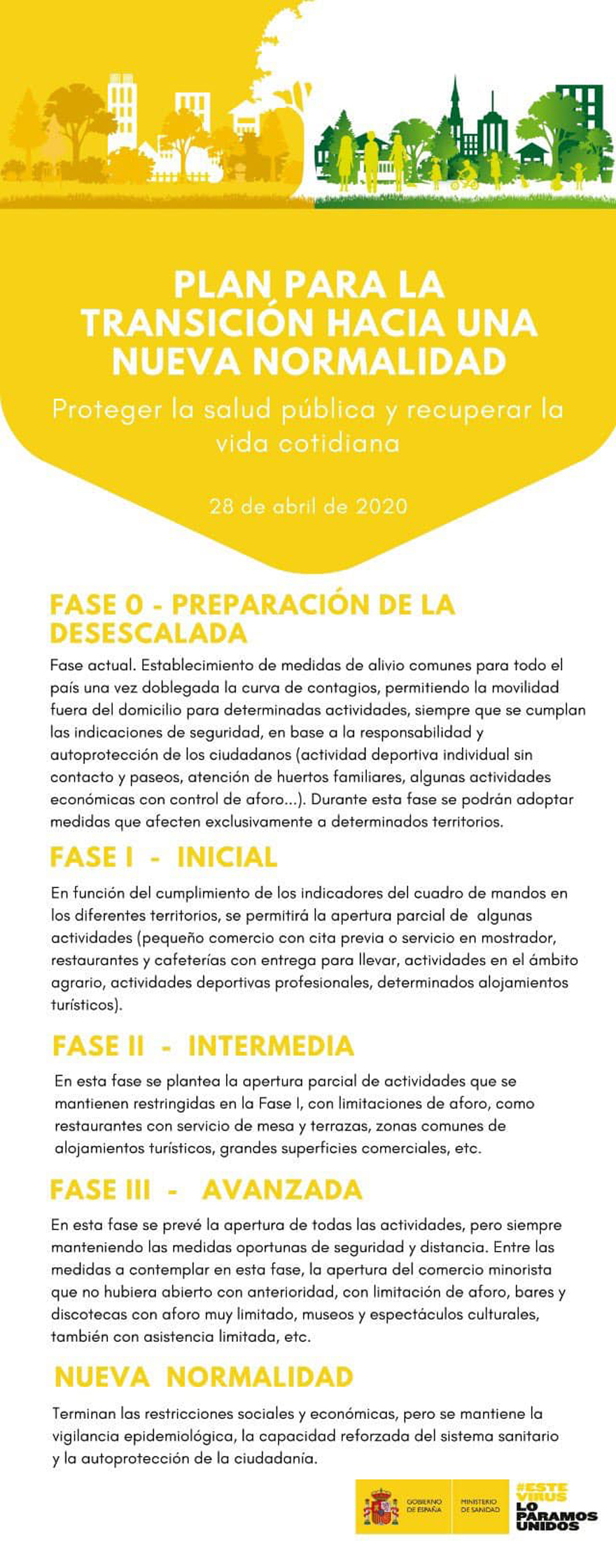 En cas de passar satisfactòriament totes estes etapes s'aconseguiria la nova normalitat a la fi del mes de juny, una etapa en la qual acabarien les restriccions socials i econòmiques tan exhaustives, però en la qual es mantindria la vigilància epidemiològica, la capacitat reforçada del sistema sanitari i l'autoprotecció de la ciutadania.