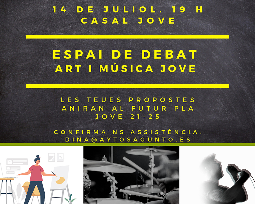 La Regidoria de Joventut i Infància de l'Ajuntament de Sagunt, amb la intenció de continuar coneixent les propostes de la joventut de la ciutat en relació a l'aprovació del nou Pla Jove 2021-2025, ha convocat una trobada amb jóvens creadors i creadores, artistes, músics, músiques i grups musicals, ja siguen amateurs o professionals, del municipi per a este dimecres, 14 de juliol, a partir de les 19.00 hores en el Casal Jove del Port de Sagunt.