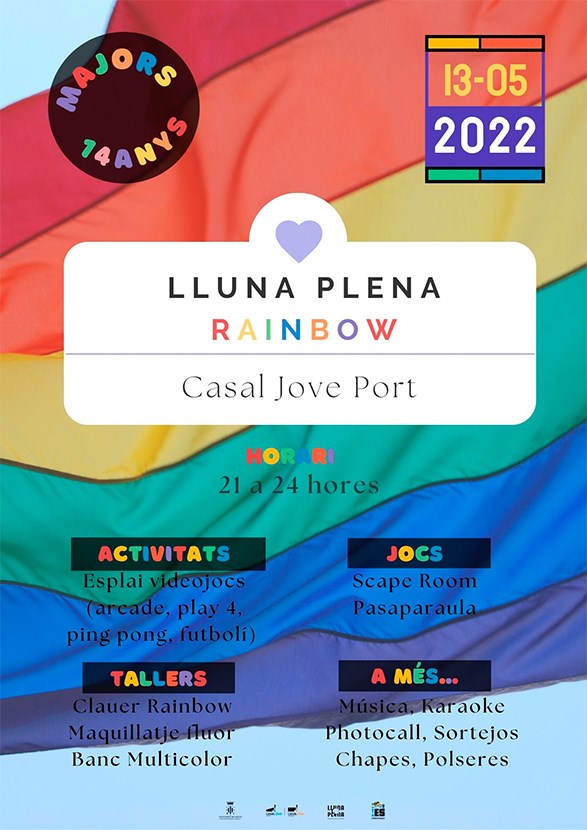 Este divendres, 13 de maig, el departament de Joventut i Infància de l'Ajuntament de Sagunt organitza en el Casal Jove del Port de Sagunt la Lluna Plena Rainbow, una edició especial d'este esdeveniment mensual amb motiu del Dia Internacional contra l'Homofòbia, Transfòbia i Bifòbia, que es commemora cada any el 17 de maig.