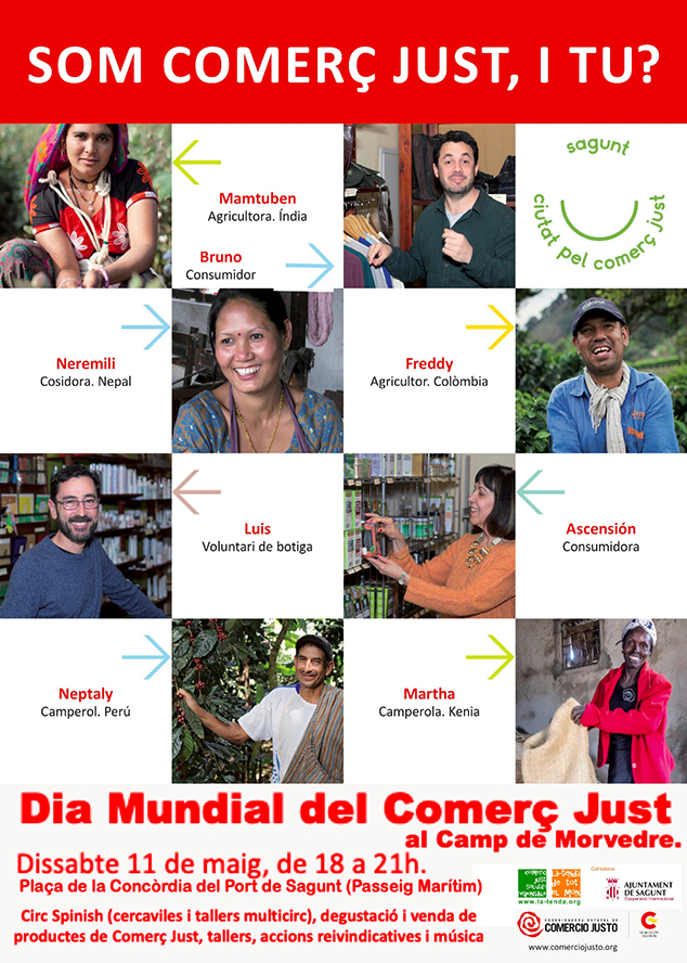 Davall el lema ‘Som Comerç Just, i tú?’ el Camp de Morvedre s'unirà a la celebració del Dia Mundial del Comerç Just dissabte que ve 11 de maig, de 18 a 21 h en la plaça de la Concòrdia a la platja del Port de Sagunt, amb un programa d'activitats organitzades per la Tenda de Tot el Món en col·laboració amb la regidoria de Cooperació Internacional de l'Ajuntament de Sagunt en el marc del projecte ‘Sagunt, ciutat pel Comerç Just’.
