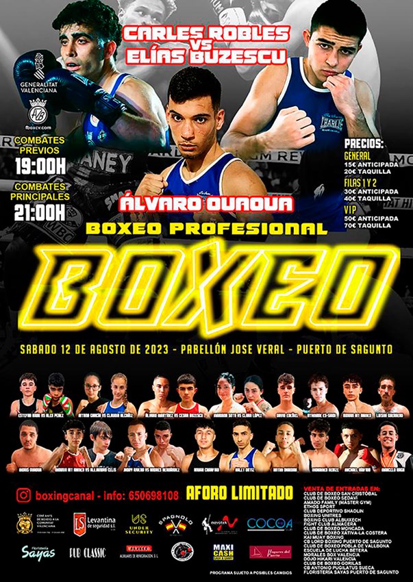 puncheur del Port de Sagunt, Álvaro Refre, i tampoc faltarà la cita els boxejadors saguntins Álvaro Ouaoua, Andrés Hernández, Moris Ouaoua, Mounir Ait Ahmed, Riduan Ait Ahmed i César Buzescu que es mesuraran a púgils d'Albacete i Madrid, Tarragona en una vetlada en la qual participaran també boxejadors de la província de Castelló.