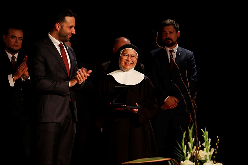 Seguidament, es va entregar la Medalla d'Or de la ciutat a les Germanes del Convent Serves de Maria de Sagunt, per la seua labor social durant 500 anys i pel 400 aniversari de l’entrega i custòdia de la Verge del Bon Succés. La seua dedicació i entrega han tingut un impacte positiu en la vida de moltes persones de la ciutat, per la seua labor en la cura de malalts, persones majors i activitats educatives i socials que contribuïxen al benestar general de la comunitat.
