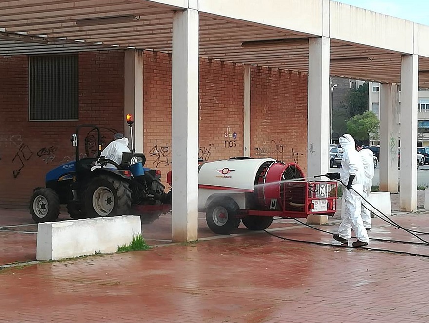 Agricultors prestant ajuda amb la seua maquinària al Consell Agrari per a la desinfecció dels carrers