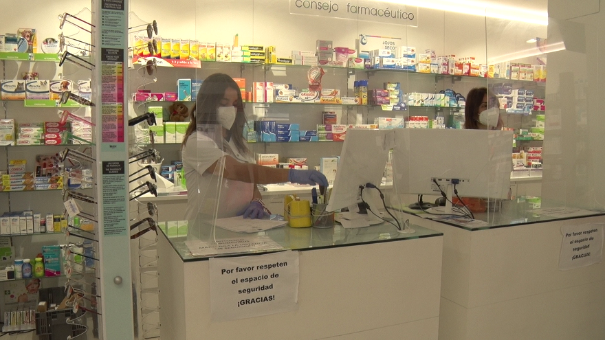 Una farmàcia del municipi complint amb les mesures de seguretat