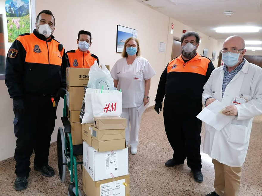 Protecció Civil lliurant mascaretes en l'Hospital de Sagunt