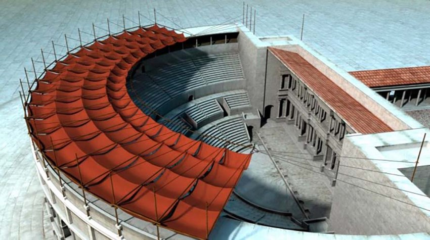 També explica que els romans en la seua època per a pal·liar les altes temperatures utilitzaven el velarium, que era una cobertura desplegable de tela composta de diverses fulles (o vels) de cànem, utilitzada en els circs, teatres i amfiteatres romans.