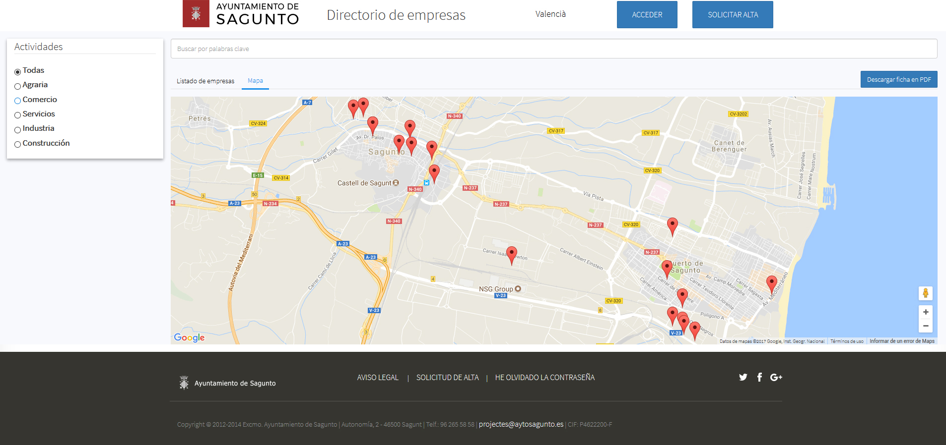A través de l'adreça web http://directoriempreses.aytosagunto.es les empreses podran inscriure's gratuïtament i informar dels seus serveis al públic i fer d'esta eina una finestra més per a donar-se a conèixer entre els seus potencials clients. Per la seua banda, el regidor de Promoció Econòmica, Miguel Chover ha puntualitzat que “a nosaltres com a ajuntament, també ens va a servir, i anem a donar compliment a un acord plenari de poc més d'un any, en el qual se sol·licitava que el consistori també poguera tenir una base de dades per a acudir quan estigam realitzant contractes menors, per exemple, poder acudir a empreses que es dediquen a una determinada labor”.