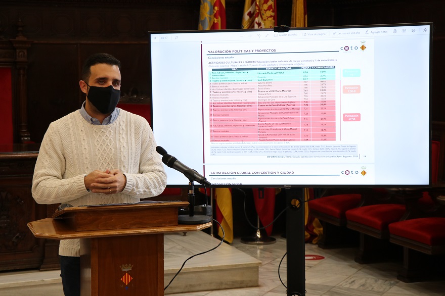 Este matí, l'alcalde de Sagunt, Darío Moreno, i la regidora de Participació Ciutadana, Ana María Quesada, han donat a conéixer els resultats d'esta enquesta, realitzada a peu de carrer a 835 persones majors de 18 anys (del total de 53.851 majors d’edat, segons l’Institut Nacional d’Estadística) i residents en el terme municipal de Sagunt. L'objectiu principal del projecte ha sigut analitzar els principals indicadors de gestió de l'Ajuntament de Sagunt com ara neteja viària, enllumenat, atenció a la ciutadania, programació cultural, instal·lacions esportives, seguretat, obres, comunicació, execució de projectes, entre d’altres.