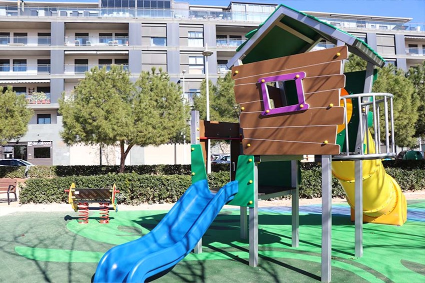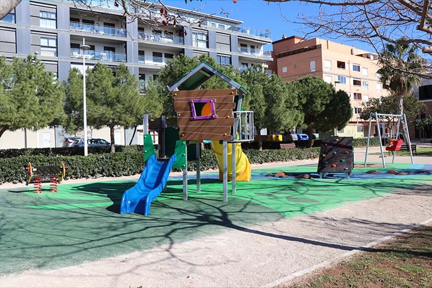 Els treballs realitzats han consistit en l'eliminació de les restes de jocs existents, en la retirada de les llosetes de cautxú, l'excavació del perímetre dels jocs, l'execució de solera de formigó per a fer una única zona comuna i contínua, l'execució de sòl de protecció de cautxú continu i en la col·locació de jocs. A més, en el perímetre exterior de la zona de jocs s'ha inclòs un paviment similar a l'existent, però més resistent anomenat ‘stabex’.