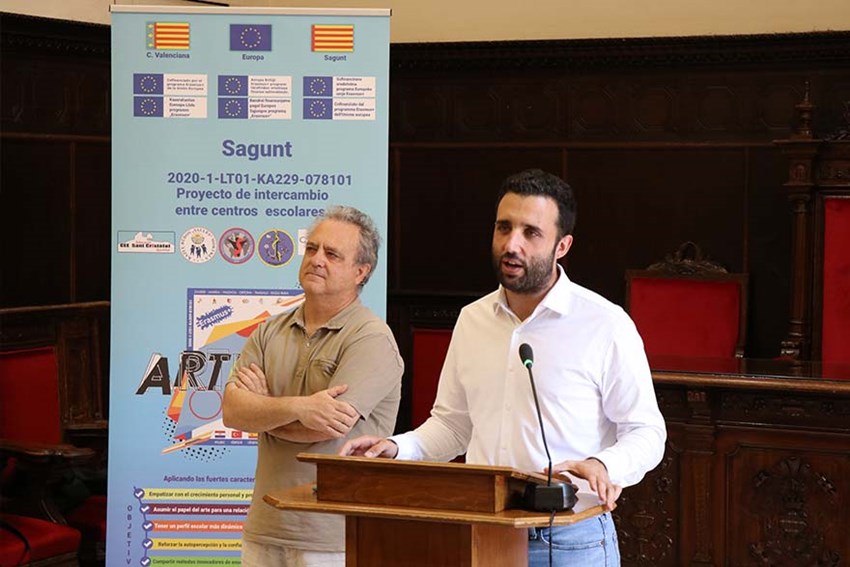 L'alcalde de Sagunt, Darío Moreno, i el regidor d'Educació, José Manuel Tarazona, han rebut i donat la benvinguda este matí als participants en el programa Erasmus+ de l'IES CEE Sant Cristòfol. Este programa està emmarcat en el projecte ARTHERA del centre, que partix de la idea que l'art existix en tots els àmbits de la vida i és imprescindible per a la progressió de la societat.