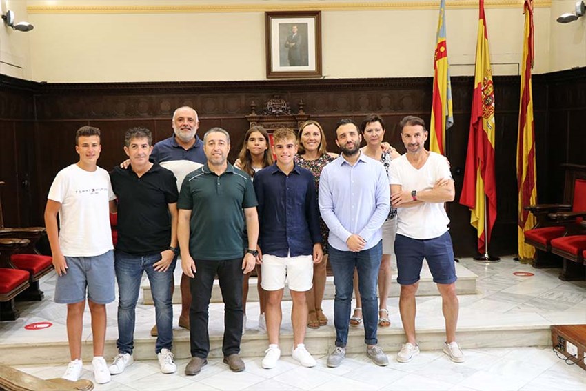 L'alcalde de Sagunt, Darío Moreno, i el regidor delegat d'Activitat Física, Salut i Esports, Javier Timón, han rebut este matí en el Consistori Hugo Caparrós Bastera pels seus recents èxits esportius.