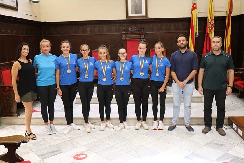 Les gimnastes de l'equip, que porten competint juntes des de fa set anys, són: Celia López, Neus García, Claudia García, María Aleixandre, Irene Gimeno, Laura Camps, Inma Camps i María Erruz. A més de les gimnastes, a la recepció també han assistit la presidenta del club, Paqui Rondán, i els tècnics de l'equip, Elena García i Daniel García.