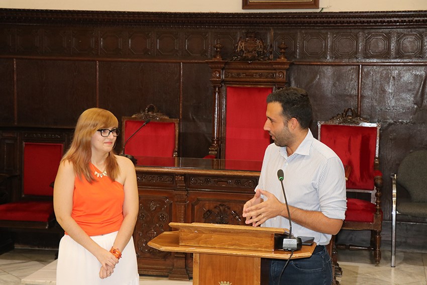 L'alcalde de Sagunt, Darío Moreno, ha rebut este matí la saguntina Cristina Micó Melià, guanyadora del premi a millor joc absolut en la categoria Hobby de la Game Development World Championship (GDWC) pel videojoc Seeking Light.