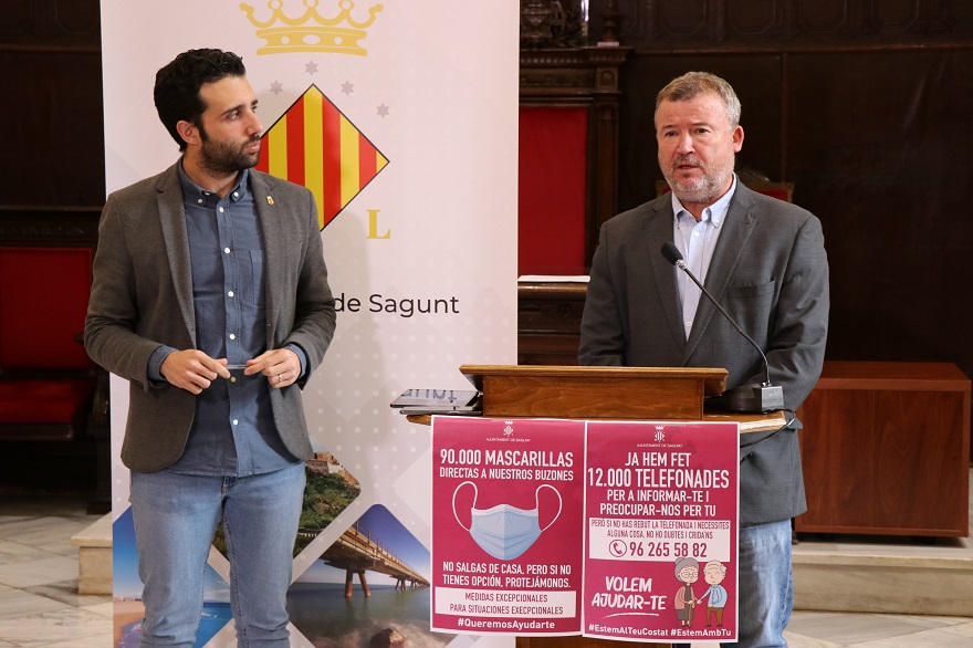 L'Ajuntament de Sagunt repartirà 90.000 mascaretes a domicili per correu i ajorna el pagament en període voluntari de la taxa de guals al 3 de juny. Així ho ha informat este matí en roda de premsa l'alcalde de Sagunt, Darío Moreno, a més de l'evolució de mesures extraordinàries com el servici d'atenció a persones majors.