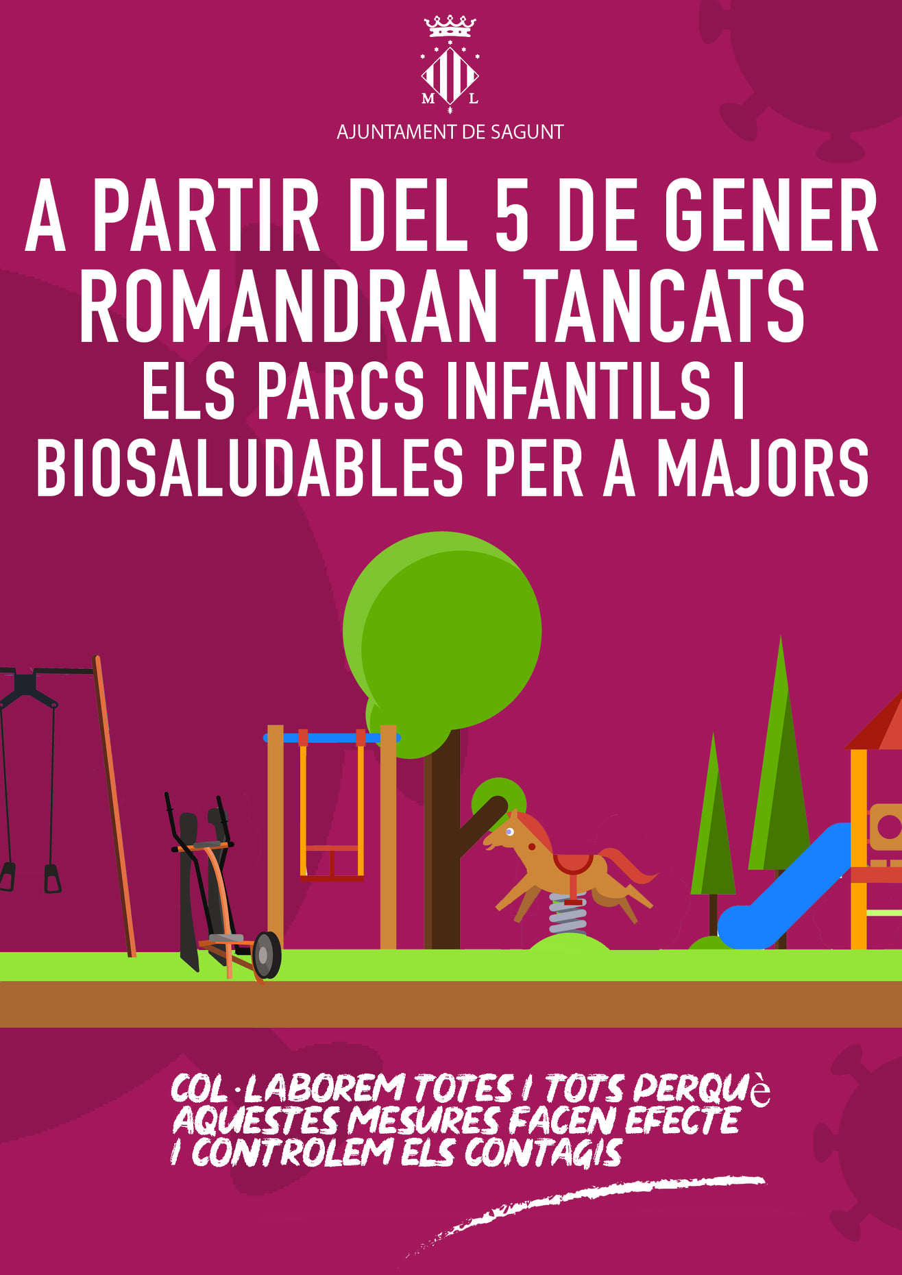 L'Ajuntament de Sagunt ha decidit tancar els parcs infantils i els biosaludables per a majors a causa de l'actual situació derivada de la Covid19.