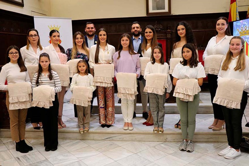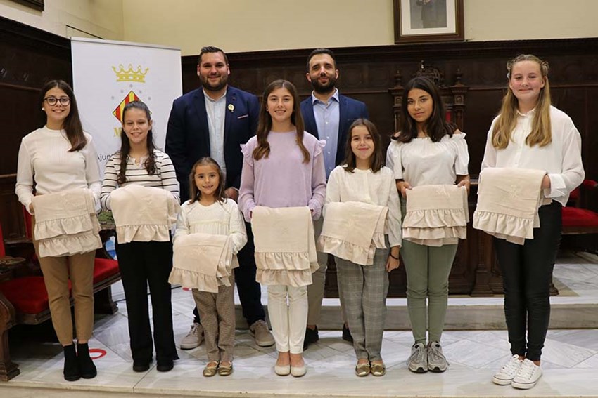 El Consistori va obsequiar també amb el tradicional mantó, com ve ocorrent any rere any, a la Cort d'Honor formada per Eva Marín Más, de la Falla Santa Anna; Beatriz Lara Carpena i María Peña Calvo, de la Falla La Palmera; Isis Gil Mellado i Ana Gargallo Alcaide, de la Falla Eduardo Merello; Noelia Mañez Pons i Irene Cardona Marzal, de la Falla El Palleter; Alejandra Rubio Dasí, de la Falla La Marina; Leyre Parrado Martínez i Edurne Parrado Martínez, de la Falla Luis Cendoya; i Carla Martínez Magallanes i Lucía Tebar Gallur, de la Falla Baladre.