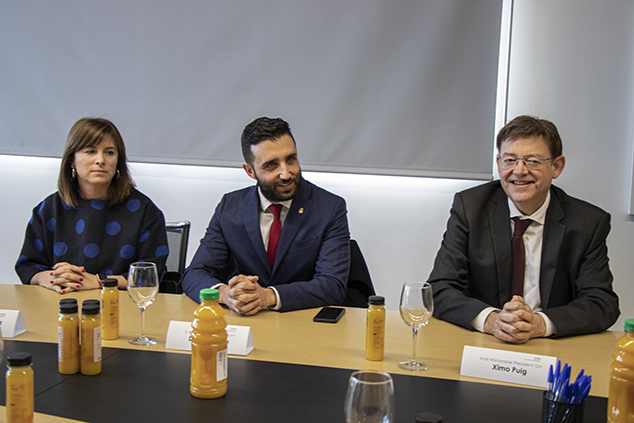 Este matí l'alcalde de Sagunt, Darío Moreno, ha assistit a una reunió en l'empresa Zuvamesa acompanyant al president de la Generalitat Valenciana, Ximo Puig, juntament amb la regidora delegada de Promoció econòmica i Industrial, María José Carrera. Esta reunió ha servit perquè Zuvamesa presentara quins són els seus projectes a curt i mitjà termini i, a continuació, tots els membres han realitzat una visita a la fàbrica on han pogut visualitzar tots els processos que realitzen amb les taronges. Durant la visita han estat presents també els regidors de l'Equip de Govern Pepe Gil i Roberto Rovira