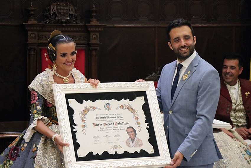 L'alcalde de Sagunt va manifestar que les Falles són molt més que els monuments efímers de cartó i fusta: «Són el reflex de la nostra identitat com a poble. En cada resplendor de la foguera, en cada espurna que s'eleva cap al cel, les Falles s'alcen com a símbol d'unitat i vincle entre tots els valencians. Són el fil daurat que teixix els somnis d'un poble, la paleta de colors que pinta els nostres carrers de passió i alegria. Com les peces d'un puzle ancestral, les Falles encaixen en cada racó de la nostra història, amalgamant tradició i modernitat, passat, present i futur». Darío Moreno també va destacar el que suposa ser proclamada Fallera Major: «Implica molt més que portar una banda, és un compromís amb les nostres arrels, cultura i història, és portar en el cor la passió de les nostres Falles i la responsabilitat de transmetre aquesta passió a tots aquells que s'acosten a nosaltres».