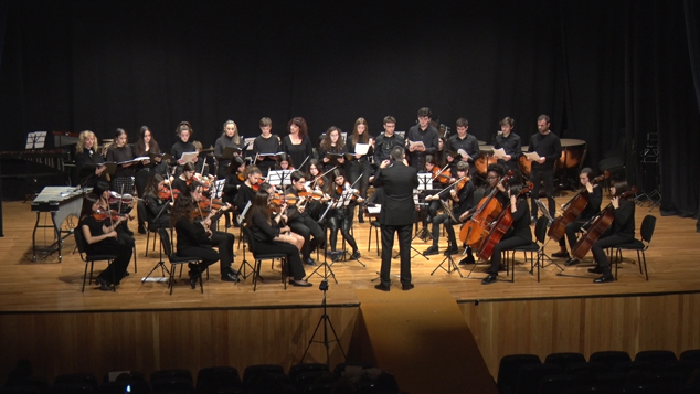 L'orquestra i el cor del conservatori van interpretar Serenade for string orquestra, de Norman Leyden; Danses romaneses, de Béla Bartók i Ave Verum, de W. A. Mozart, davall la direcció de Francisco Hernández i María José Canet. A continuació, la Big Band va interpretar How high the moon (arr Michael Sweeney), de Morgan Lewis; Blue bossa (arr. Mark Taylor), de Kenny Dorham; A string of Pearl (arr. Jack Ham), de Jerry Gray; i A big band christmas II, de Arr, Carl Strommen. Tot això, amb la direcció de Francisco Garfella i Ignacio Ruiz.