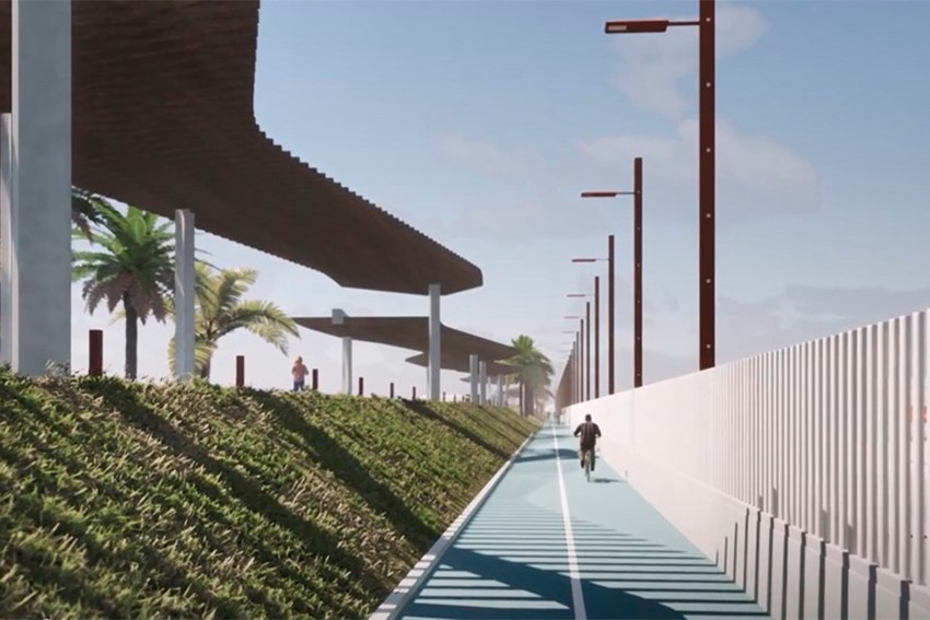 Així, el projecte es desenvolupa sobre els terrenys ocupats per la part terrestre del pantalà actual per a crear un nou espai urbà que connecte el final de l'actual Travessia del Mediterrani amb l'arrancada del tram marítim del pantalà. Així, entre les característiques que contempla este projecte cal destacar que el nou passeig comptarà amb un carril bici ja que serà el punt de finalització de la via verda de Sierra Menera, la de major longitud d'Espanya.