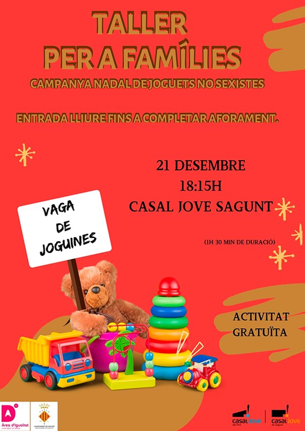 La segona part d'esta campanya consistix en 'Vaga de joguets', dos tallers destinats a les famílies en els quals col·labora el departament de Joventut i Infància. A través d'estos tallers vivencials es reflexiona sobre els rols de gènere en els jocs i joguets.
