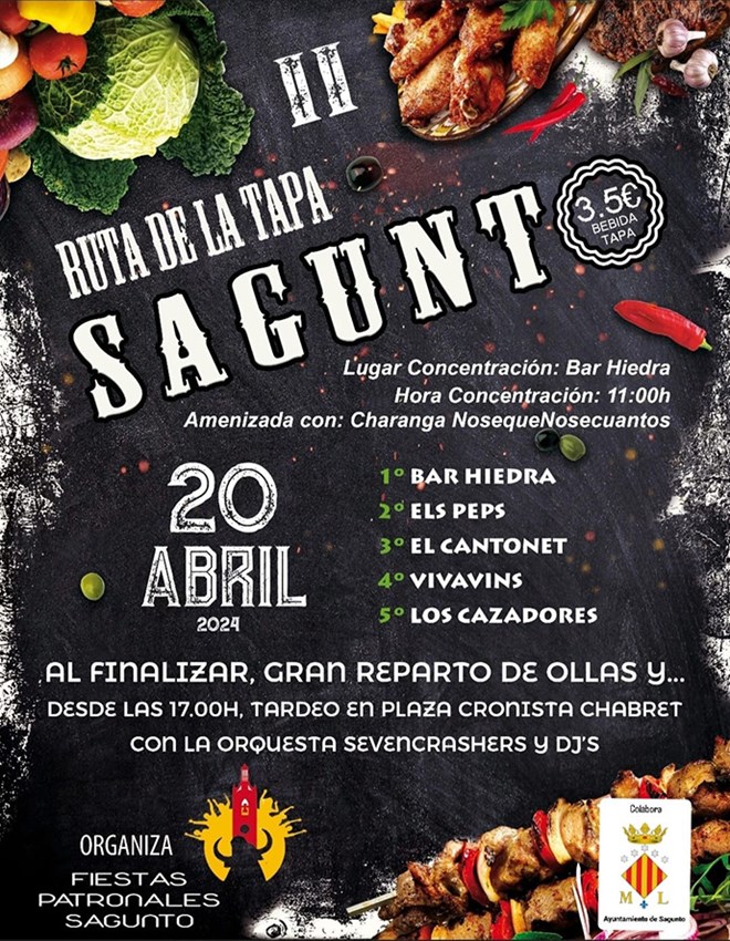 L’Associació Cultural Penyes Festes Patronals de Sagunt ha organitzat, amb la col·laboració de la regidoria de Festes i Cultura Popular de l'Ajuntament de Sagunt, una sèrie d'activitats per al dissabte 20 d'abril amb motiu del Mig Any de les festes. L'esdeveniment es desenvoluparà durant el dissabte 20 d'abril i els actes principals seran en la plaça Cronista Chabret.